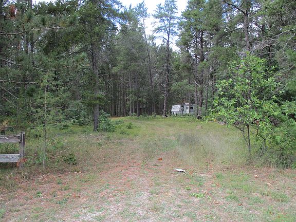 Excellent building site on two lots in AuSable Woods with E Branch of AuSable shared private access. Campers allowed year-round. This is roughly 2.75 acres with a drive and site cleared, a shed, and another unfinished small building. Underground electric is present and run to both structures. The camper is not included.
