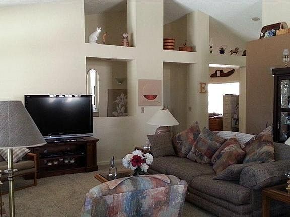 This former model has been well maintained inside and out, and is located on a cul-de-sac on a half acre, fully landscaped lot. Step inside and instantly notice the large entry, high vaulted ceiling and shutters throughout. The kitchen boasts granite countertops and stainless steel appliances. There is ample room for your family to enjoy meals in the large, formal dining room. The office/den has a custom bookshelf. In addition, this home has 3-bedrooms with mirrored closets. The master bathroom has been completely remodeled with granite counters, porcelain tile, rain shower head, Diamond Fusion coating shower door and bronze oil fixtures. The grand backyard is picturesque and lush with trees, plants and a large covered patio! No need to go to the park when you can have your own! There is an enclosed spa, 2 permitted storage buildings, a large separate gated area for animals, etc. Seller may consider owner financing. Don't miss this beautiful home!