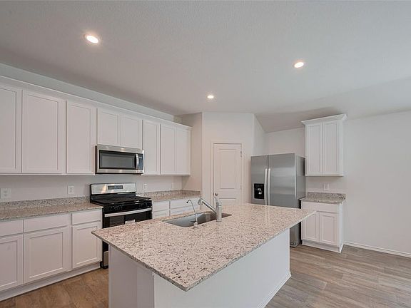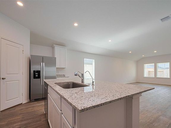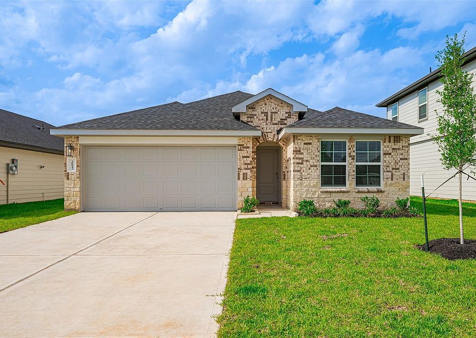 Step into effortless one-story living with this thoughtfully designed Gaven plan by D.R. Horton, nestled in the vibrant Tamarron community of Fulshear. Spanning nearly 1,800 square feet, this four-bedroom, two-bath home offers an inviting open-concept layout that blends comfort and functionality. The heart of the home features a spacious kitchen outfitted with granite countertops, stainless steel appliances, and seamless flow into the living area perfect for everyday living and entertaining alike. Durable vinyl flooring extends throughout, offering both style and easy maintenance. Large windows draw in natural light and provide a serene view of the covered patio and backyard. The home's exterior showcases timeless curb appeal with a classic blend of brick and stone. Located in one of the region's most sought-after communities, residents of Tamarron enjoy access to resort-style amenities and a location that combines small-town charm with growing city convenience.