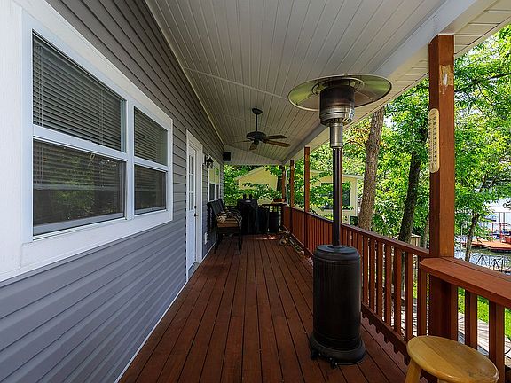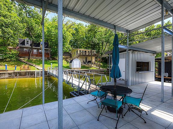 PARTY DOCK ALERT right here!! Here is the lakefront cabin you have been looking for! Located at the 5 MM of the Osage on a deep water cove, this 2 bed/2 full bath home is ready for you to move in! This is a gentle lot with beautiful trees, huge views and plenty of room for friends & family. The concrete dock has a 14x40 slip, a PWC slip and lift & bar you can take a seat at & grab a drink & keep eyes on the game! This house has newer siding, roof, carpet, an updated walk-in shower on the lower level & is part of the Rocky Mount sewer district. Additional parking is available on the hillside for about 4 more cars. It comes turn-key, what else can you ask for?!
