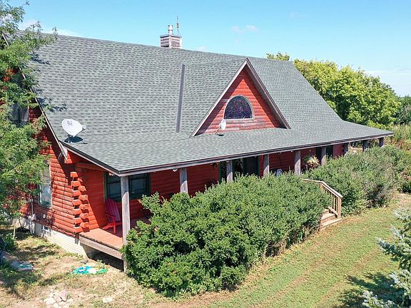 Welcome to this stunning log home nestled on a sprawling 9.4-acre lot in Volin South Dakota, where rustic charm meets modern comfort. This beautiful property offers a perfect retreat with breathtaking panoramic views of the surrounding valley, providing a tranquil escape from the hustle and bustle of everyday life. The home features three inviting bedrooms, including a master suite with its own private on-suite bathroom. An additional well-appointed guest bathroom sits in-between two additional bedrooms caters to family and friends, while a spacious loft provides flexible space for relaxation or recreation. Step outside to experience the true essence of this property. Enjoy your morning coffee or unwind in the evening on the expansive covered front porch, measuring 60x10, perfect for taking in the stunning views and the morning air. The back deck, 34x8, offers ample space for outdoor dining, entertaining, or simply soaking up the sounds and views of country life. For added convenience and storage, the property includes a double attached garage and outbuilding to ensuring ample space for vehicles and tools. This log home combines the warmth of traditional craftsmanship with the beauty of nature, making it an ideal setting for creating lasting memories. Don’t miss the opportunity to own this unique slice of paradise with unparalleled views and comfortable living.