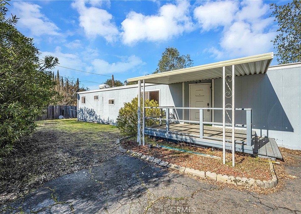 Welcome to this 1970 single wide mobile home, nestled in a secluded-feeling location. With a floor area of 684 square feet, this features 2 bedrooms and 2 bathrooms and an open floor plan for kitchen and living room. The bedrooms are located on opposite ends of the home for maximum privacy. One of the standout features of this home is the partially covered deck along the entire back of the house, which was recently treated with wood preservative. Perfect for outdoor entertaining, this space provides ample room for hosting barbecues, relaxing in the sun, or enjoying the fresh air with friends and family. Additionally, the covered porch in front of the house is perfect for enjoying your morning coffee or reading a book on a rainy day. The yard is fully fenced to provide privacy and security. The yard is perfect for pets, children, and gardening enthusiasts alike. As you step inside, you will be welcomed by a warm and inviting living room with a woodstove. The kitchen is equipped with ample cabinet space and is open to the living room, making it perfect for those who enjoy cooking and entertaining. There is no 433 foundation or foundation system. Don't miss out on the opportunity to make this lovely property your new home!