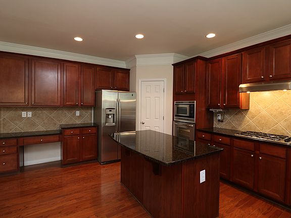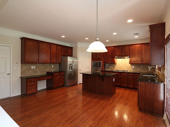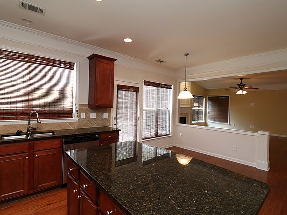 • Kitchen Features: Breakfast Bar, Cabinets Stain, Eat-in Kitchen, View to Family Room, Kitchen Island, Pantry Walk-In, Solid Surface Counters