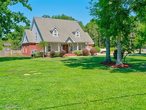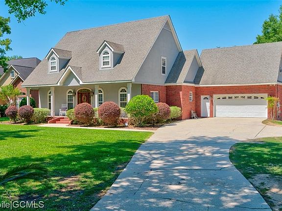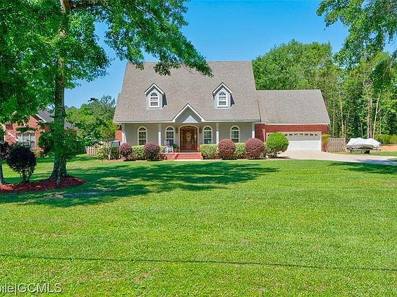 Stunning home located in Riverview Pointe. Sits on 1.5 acres near Rabbit Creek and Dog River just minutes from I-10.Home backs up to a live stream with Bream & Bass directly across the street from a wide part of Dog River with aneighborhood boat launch. The eat-in custom kitchen includes SS appliances, granite counters and a breakfast bar.A formal dining room and a large open family room leads to a beautiful covered patio overlooking a magnificent saltwater pool. Hardwood and tile floors flow throughout the home. The master suite is conveniently located on the 1stfloor. 2.5 baths and 3 additional bedrooms on the 2nd floor. A large bonus room over the garage with a detachedworkshop/storage shed. A must see home!