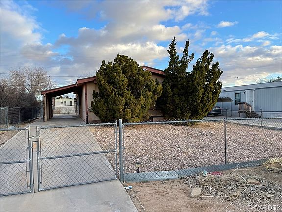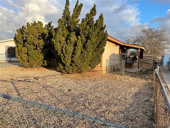Great Starter home or investment rental. This home is move-in-ready and priced to sell! Cute 3 bedroom, 2 full bath semi-furnished home has vaulted ceilings and feels very spacious inside. One bedroom has built in desk for an office space. Roof is approximately 10 years old and brand new gas hot water heater was replaced 6 months ago. Home is furnished with living room and bedroom furniture and other decor. Each side of home has a covered patio for the summers, enjoy the shaded areas. Lot is fenced with a cross fence in the backyard, has a large area for a dog run or room for a BBQ and entertainment space. Mature trees give you the privacy you need, call this place your home! If using financing and tie downs/engineer cert is needed, buyer must make arrangements to pay for. Kingman is only 45 minutes from Bull Head City/Laughlin area for all your entertainment and water activities.