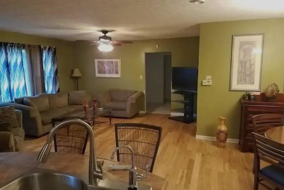 Large spacious ranch on a Quiet street with wooded lot. Large master bed room with in suite bath and walk in closet. No water bill. Gas heat and central air.