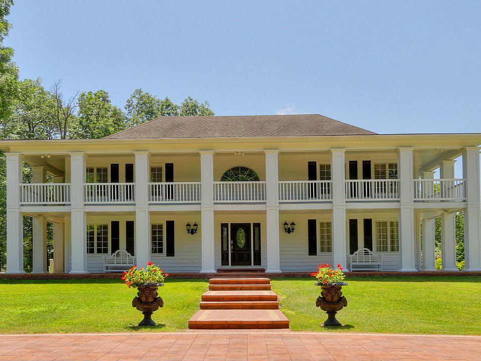 Charming Southern Plantation Estate, 80 beautiful gated acres w/flowing creek, mature trees, two ponds, an amazing outdoor entertaining area, hearth-like gazebo, fire pit & separate meditating spot. Surrounded by a garden & park like setting w/total privacy.This one of kind custom home has tall pillars that surround the outdoor wrap around porch and deck accessed by every bedroom. Perfect WEDDING VENUE OR BED & BREAKFAST!Each room has amazing view of the nature steps away.