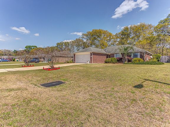 Adorable one owner home in Brooke Estates! Close to all amenities and the rapidly developing area of north Crestview, this home is located in a pool community on a great 1/4 acre lot. Tile is found throughout the main living area with carpeted bedrooms. There is a large dining area open to the living room that leads into the kitchen. Kitchen has great counter and cabinet space with an eat-in area big enough for a table with room for 6. Laundry room is off the kitchen and big enough for additional storage, shelving, and extra fridge! Backyard is fully fenced with a nicely shaded sitting patio. Schedule your showing today!Measurements are approximate. Buyer to verify all information deemed important.