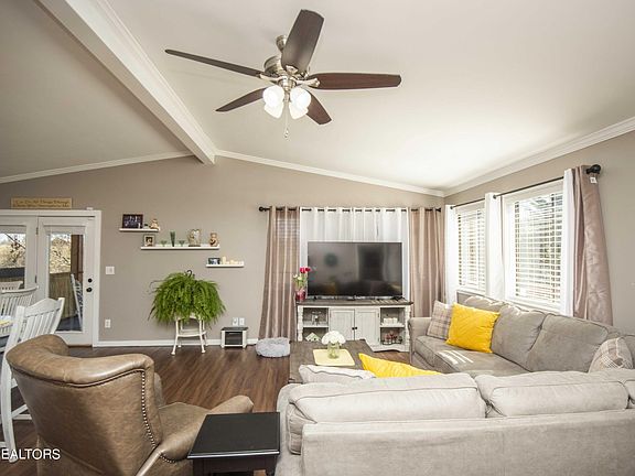 Beautiful renovated 2 Bedroom 2 Bath home with two bonus rooms. Low maintenance vinyl and brick siding with a long lasting metal roof. Large 0.64 acre lot with flowering trees, shrubs, and a small babbling creek. Living room features include vinyl plank flooring, decorative crown molding and cathedral ceiling. AMAZING kitchen with lots of cabinetry, granite countertops, island with extra cabinets, decorative backsplash, and stainless steel appliances. Also on the main level you will find two spacious BRs and a full bath. Downstairs are 2 bonus rooms that give you so much flexibility and a full bath with walk-in shower and laundry area. One car garage with extra covered concrete parking. Owners installed Leaf Filter Gutter System with transferrable warranty, New Trane A/C Condenser in 2021, New hot water heater January, 2024. Great location convenient to Seymour, Knoxville, Sevierville and Kodak.