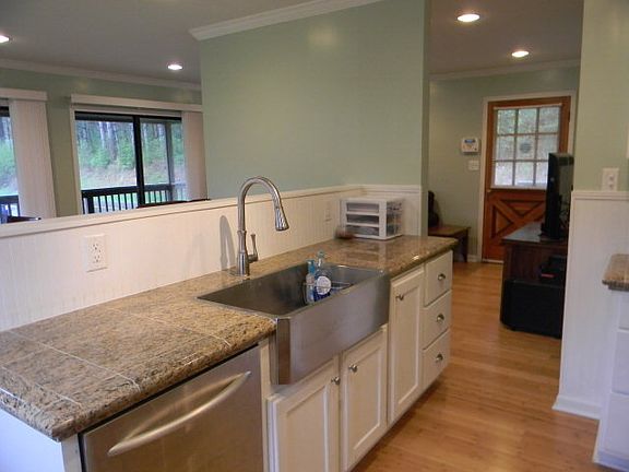 4BR 2BA (2/1 up & 2/1 finished walkout basement) has been completely remodeled, crown molding throughout upstairs, stainless appliances, marble counter tops, lighted cabinets, stainless farmhouse sink, tiled master bath w/glass bowl sinks, bamboo floors and wrap around deck with screened in porch includes sitting and grilling spaces. Downstairs has complete kitchen, living room, 2 bedrooms and 1 bonus room, bath w/shower, office and separate washer and dryer (upstairs and down both have washer and dryer). Added AC/Heat wall units in each bedroom and living area. You can control the temperature you like in your room. Outside is large backyard, great landscaping, storage shed wired for workshop, stream runs along back of property, great for trout fishing. Location is close to Cullowhee, Sylva, Glenville, and Cashiers . If you are looking for lots of space for your family at a great price, or you need separate space for in-laws or teens, you need to see this. Great potential for WCU students, basement could be locked off and rented out making it a 2/1 duplex with two units. Just 6 miles from Lake Glenville rated the cleanest lake in the US by the EPA.