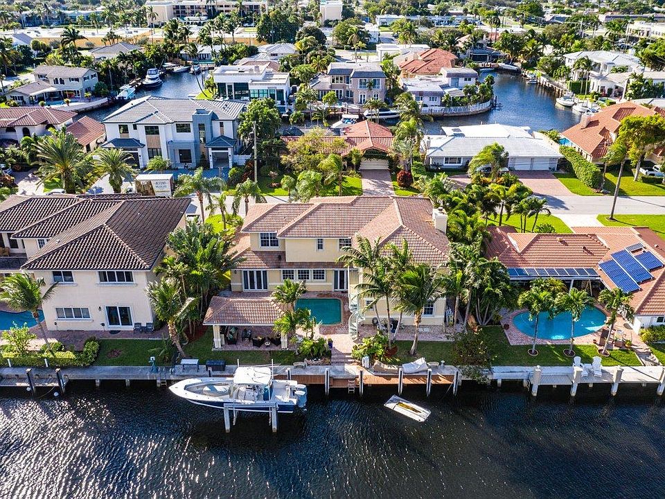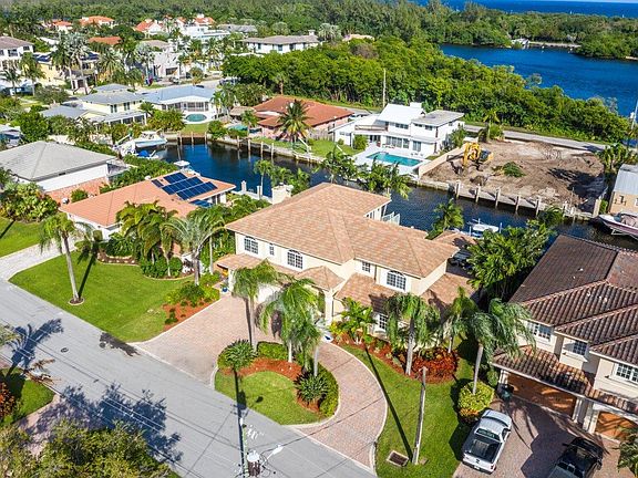 Blue Inlet is a gorgeous waterfront neighborhood with easy 1 mile walk to the beach and no HOA. This home was completely structurally redone in 1995 with a major addition. 2-story home faces 88' of deepwater canal; 67' dock & no fixed bridges ocean access. Flooded with natural light, home has 5 bedrooms, 4 bathrooms, 3 car garage, travertine & wood flooring and an open kitchen with granite countertops, large pantry, gas range and stainless steel appliances. Perfect for entertaining, kitchen opens to separate dining and living areas, all of which overlook the canal, 12x20 gazebo with grill, and oversized pool. A full guest suite is on the 1st floor and the other 4 bedrooms (including the master) & laundry room are on the 2nd floor; master suite has his/hers custom closets & en-suite bath.