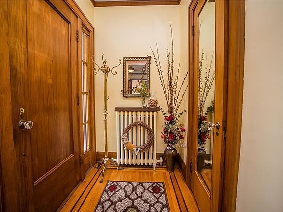 This is the one you have been waiting for! Stunning 1920's Colonial on lovely landscaped deep lot. Gumwood trim, leaded glass, French doors, pocket doors, crown moldings, in-laid hardwoods, and those are only a sampling of the features of this great home. Living room has gorgeous historic wood paneled wall and mantle with gas fp, Den, study, 1st floor Powder & Eat-in kitchen with granite counters. An abundance of cupboards and a glass block wall for additional natural light. Huge master with direct access to main bath.
