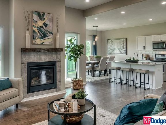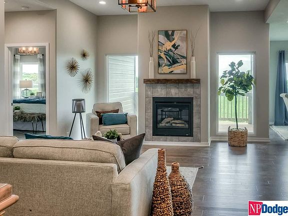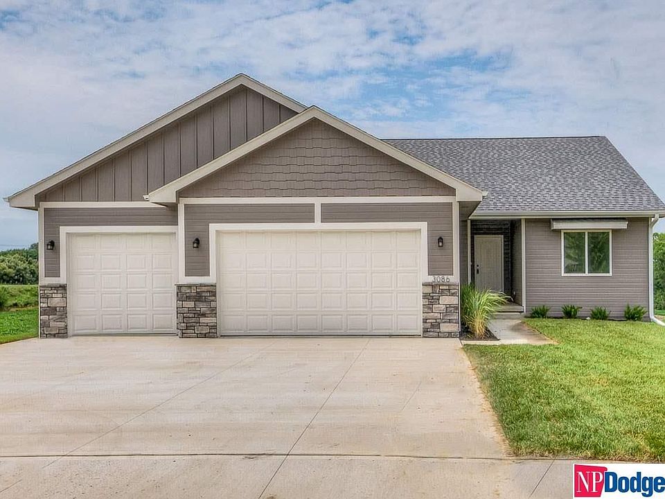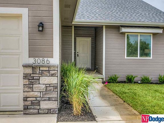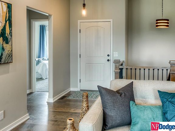 Beautiful new construction home with 3 car garage in Southern Ridge, just outside of Blair. Modern kitchen with dining area, granite countertops, ss appliances. Walk out from the kitchen to backyard deck that backs to green space. Sunny living room has gas fireplace hdwd flooring. Spacious master bdrm with barn doors leading to master bath with gorgeous tiled, walk-in over-sized shower and his and hers vanities. Beautiful lighting and neutral paint color throughout. Located on quiet cul-de-sac with no backyard neighbors.