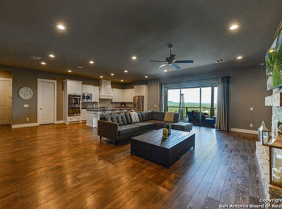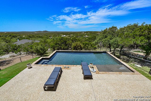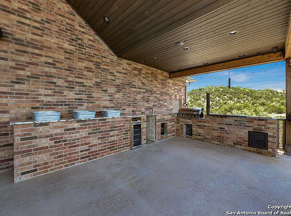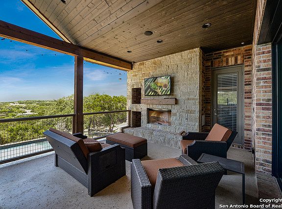 Custom home on 2 acres w/stunning views! Magnificent view of nature & the Keith Zars pool from 47 ft covered patio w/well-appointed outdoor kitchen & entertaining space, including gas & wood grills, wine fridge, fireplace & TV. Interior is fresh, beautiful, highly functional & energy efficient; Light airy kitchen w/large island, custom cabinets, wine fridge & double ovens; solar panels & special insulation; wood flooring; plantation shutters;Dual FP in master/bath; dual control master shower; media room.