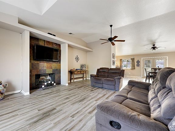 Exceptional value! This beautiful 3 Bedroom, 2 Bathroom home on a quarter acre lot, features a new front yard desert landscape, wood-look tile flooring in the living room, dining room, kitchen, and hall way. The home also has ample RV and toy parking and secured iron gates. The 500 square foot garage is very spacious and provides ample storage. The kitchen has recently been updated with double chiseled edge granite counter tops and new custom cabinets! The living room boasts a beautiful slate, wood burning fireplace that is the centerpiece of the living room. The living room opens up to the dining room. The separate dining area has French doors that lead to the expansive covered back yard perfect for entertaining. The large owner's suite features a large closet and en suite bathroom. All windows have been replaced with energy efficient, double pane glass. This home will not last!