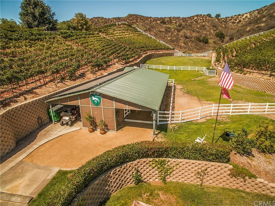 Imagine having your very own private vineyard and equestrian estate encompassing over 6.5 acres in prestigious Coto de Caza where a private gated entry welcomes you. An equestrian lover's dream with a 5 stall horse stable and office that can easily be doubled, and three large grassy pastures with the ability to expand and create your own riding arena. Miles of horse trails are right at your back door. Take pride in owning your own producing and award-winning "Jumping Vines" vineyard with 1,600 Bordeaux varietal vines including Cabernet Sauvignon, Cabernet Franc and Malbec. No expense has been spared to support this dream in the most efficient way with the purchase of 70 solar panels along with irrigation supplied by your own private well controlled by a top of the line computerized Hunter satellite system. An ideal site for events with a large, flat entertainment area surrounding the estate, a terrace with unobstructed views of the Coto Valley and a remarkably long driveway providing ample parking for all your guests to visit this amazing estate. A man-made stream and impeccably manicured grounds create a stunning ambiance that pervades the property which includes a saltwater pool, spa, outdoor grilling area and cozy fireplace. Enjoy unparalleled privacy in the most breathtaking setting.