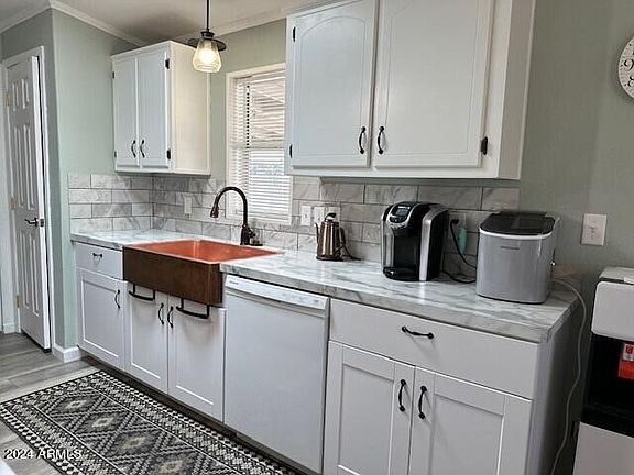 Walk into this Beautiful Looks New Home in Desired North Ranch! Open Floor Plan with Vaulted Ceiling in Great Room Sets the Scene. New Flooring and Subtle Paint Welcomes You In. A Large Kitchen, Newer Appliances and Copper Farmers Sink invites Entertaining. Dining in Great Room. En-suite Master Bedroom with individual Vanities and BRAND New Walk In Shower. Large walk-in Closet. Extra PLUS ROOM for Guests or Office or Crafts. Outdoor Find Huge Covered Patio for Dining and Relaxing. Covered Breezeway to 12x20 Shop with Bench and lots of Storage. Enclosed Fenced area for the pup. Large Shade Trees. Small Golf Cart carport at rear for your double wide too. Concrete pad with Hook ups for your RV. Even a Large Covered Front Porch with Mountain Views.