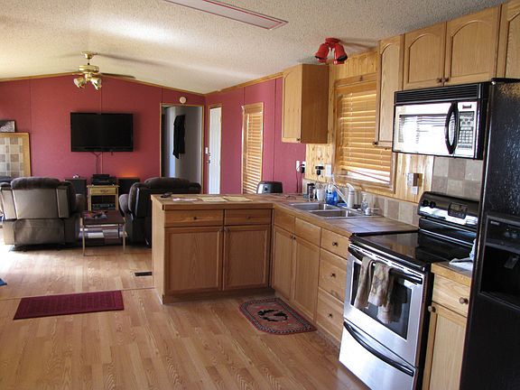 3 bedroom single wide manufactured home situate on a permanent foundation. 6.1 acres with mountain views. Zoned for horses. 2 car detached garage