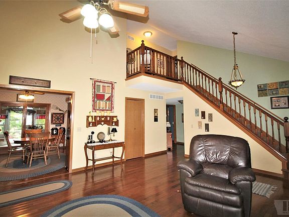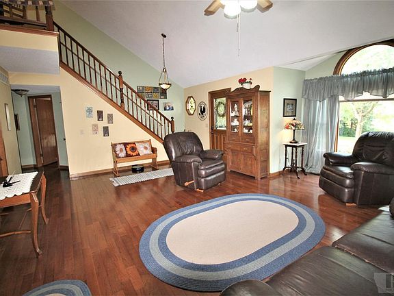 Amazing 5-bedroom home on just under 5 acres, located just minutes outside of town! Not only is the location of this acreage great, buyers will also appreciate all the space it provides both indoors and outdoors! The main floor boasts two large living spaces, an eat in kitchen, the master bedroom with a large walk in closet, and an updated bathroom that houses the laundry area! Just off the kitchen you will find the sun room where a lot of time can be spent relaxing and enjoying the scenery. Upstairs you will find two more spacious bedrooms and a full guest bathroom. The full walk out basement provides a nice family room, two more bedrooms, and another bathroom. There is also a large utility room that has tons of room for storage! This home has geo thermal heat and has a radon mitigation system already installed. Outdoors you find no shortage for storage and work space! There are several workshops and garden sheds that could take care of any hobby you could possibly think of!