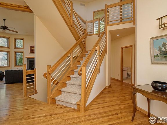 Contemporary home situated on a breathtaking lot backing to open space. Stunning views of the foothills and city. Easy access to parks, trails, shops, dining, and entertainment. Vaulted ceilings, gorgeous windows, and an open and inviting floor plan. Enjoy sweeping views from numerous decks and patios accessed from the dining room, family room, and master bedroom. Easily convert main floor flex spaces to add bedrooms and add a family room or bedroom in the basement. Ditch watering rights.