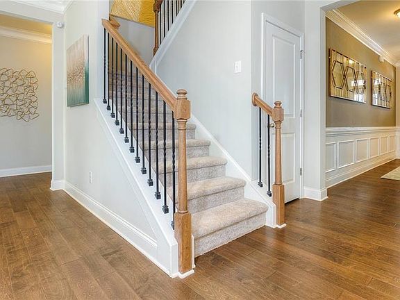 MODEL HOME! Loaded with UPGRADES! Best Selling Hampshire plan offers a stunning open layout. Butler's pantry & walk in pantry. 5" plank HARDWOOD flooring 1st floor main living areas, granite, stainless and tile backsplash in the oversized CHEF'S KITCHEN. Features 1st floor guest bedroom with full bath. Two piece crown molding entire 1st floor, cased windows throughout, chair rail and picture box molding foyer and dining room. Extended stone PATIO with FIREPIT! Ask about current incentives!