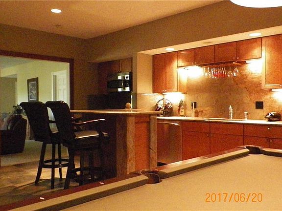 Home sits on 4.1 acres. Built 2005. 2,416 sq ft on main level, plus a finished walk-out lower level. Salt water 24x48 In ground pool, built 2012, with electric cover, slide, diving board and heater. 12x14 Cabana and separate 10x12 bathhouse with shower, built 2013. Large 3+ finished detached garage (36x42) plus 2 car attached garage. Onyx bathroom sink, granite built-ins thru out, full wet bar and pool table in lower level. Grey and Ebony stain woodwork, oak, cherry and Maple woodwork, tile plank floors.