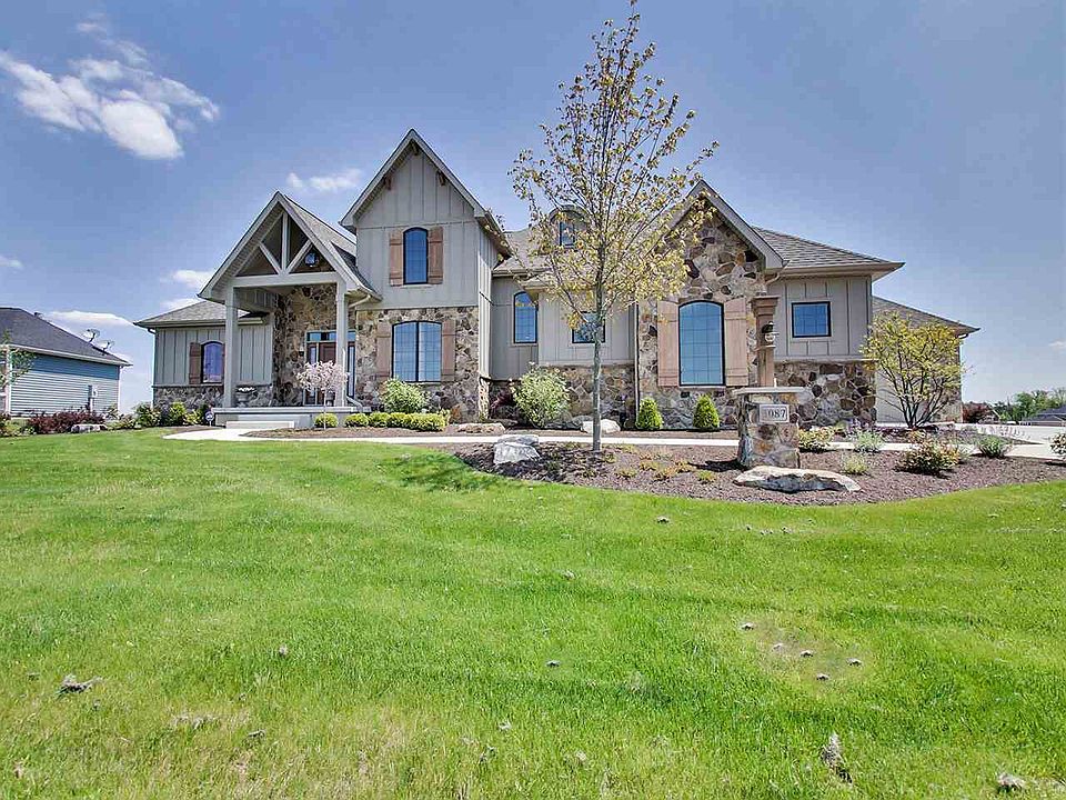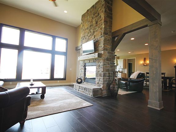 This Home makes a statement. It sits along the water on 1/2acre in Grey Oaks, located 10minutes from I-69, eateries, stores, entertainment, schools, hospitals, parks, & walking trails within highly-desired SWAC schools. Built by Timberlin Homes less than 2yrs ago, the exterior & interior, alike, deliver Style, Attention-to-Detail & well-balanced Character, mixing rich & rustic w/ clean & modern. Great Room w/ 14 ft ceilings, wall of windows overlooking expansive yard onto pond, floor-to-ceiling stone fireplace w/ 100yr-old barn beam mantle, & wood beam posts to anchor the space w/in this open floor plan. Adjacent to foyer, Formal Dining Room w/ wainscoting & sliding barn door for privacy. Rich, wide plank hardwood flooring & Ceramic Tile throughout main living spaces. Light & airy spacious Kitchen overlooks water, featuring Grabill custom cabinets, bubble glass decorative doors, subway tile back splash, expansive island w/ breakfast bar seating, granite counter-tops, SS appliances (*GE Cafe dbl oven w/ convection & 5-burner gas range w/ hood), & large walk-in butler's pantry w/ room to customize. Separate Laundry Room w/ sink, counter space, & cabinetry off large Mudroom w/ floor-to-ceiling built-in lockers leads to 2 separate 2car garages w/ thermostat-controlled heaters. Master Suite w/ 10 ft wood-planked tray ceiling has 13x7 walk-in closet w/ vaulted ceiling, double vanities, tile-surrounded garden tub & ceramic walk-in shower. Upper level includes 2 br's sharing Jack-n-Jill ba, 3rd br w/ full en suite ba, & all br's have walk-in closets. The lower level continues style in full wetBbar w/ ceramic tile plank flooring, wood beam encasement, & stone-faced walk-in Wine Cellar w/ racks & arched entry. Just off rec room, Theater Room w/ French doors, tiered-row seating, stone pillar accents, wall sconces, projector, & media equipment. Opposite end of LL includes Exercise Room w/ daylight window, 5th br (currently used as office), full ba, & walk-out entrance w/ sidelights leading to stamped-concrete patio. Stairs w/ landing lead up to expansive main level deck w/ access to main level just off the kitchen. Other details: Whole home built-in audio system by Audio Visual Solutions, Rain Bird Irrigation system, security system, walk-in attic storage, gas line to grill, back-up sump pump, professional landscaping, high-end lighting fixtures, picket-fenced small dog run (future owner may remove), & HUGE backyard. This home has it ALL... Now enjoy!