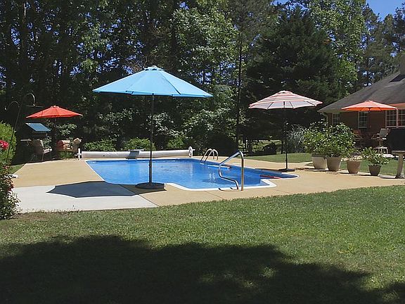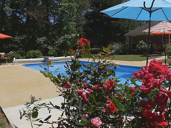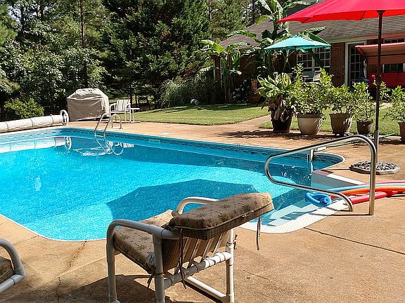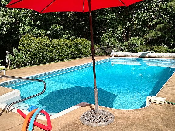 UNDER CONTRACT **Captivating and expansive 2500 sq. ft., all brick, 4 bedroom, 3.5 bathroom home with attached 2 car garage and a second detached 2 stall garage, on a 5-acre tree shaded lot. This house has a sun-filled private backyard oasis with a 16' x 32' inground pool. All new kitchen appliances. Large master bedroom suite has 2 large walk-in closets, a private make-up area, and en suite bathroom with a jetted garden tub. There are 3 guest bedrooms with one en suite and one shared bathroom. Ceramic tile in all wet areas and marble sinks and countertops in the three and 1/2 bathrooms. Detached second 2-stall garage also has a 10' x 10' pool equipment storage room and a 10' x 10' garden equipment storage area with a single garage door. Perfect for parking the lawn tractor and organizing the garden tools.