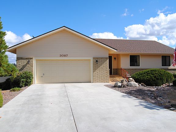 Come see this Cozy warm,Comfortable 3Bd 2Ba Home in Montana Estates. The STAINED GLASS front entry & STONE FIREPLACE is Captivating! Skylights, Wood sided Walls and Western Interior with Lodge Poles give you that Country feel. Kitchen has OAK CABINETS, GRANITE COUNTER & BACKSPLASH. Carpet, Tile and Wood Flooring throughout home. This WELL CARED FOR home with maintenance free VINYL SIDING, NEW ROOF, OVERSIZED GARAGE & SOLID BACKYARD FENCE. 400sf of extra carpeted Storage Area/Workshop/Hobby Rm in your Walkout Basement. Enjoy Great VIEWS of Mingus & SF Peaks! This PRIVATE CORNER LOT Backs up to a Park. The Low HOA a Plus!