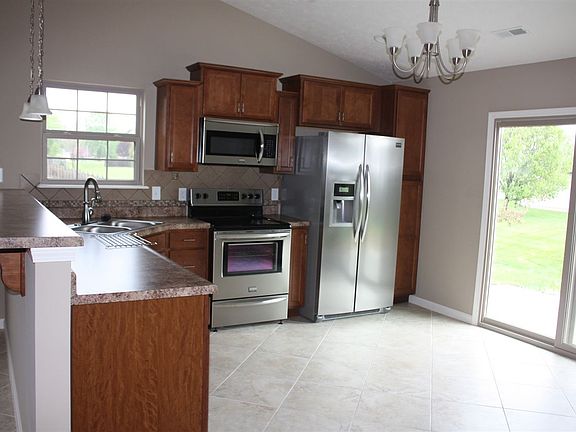 New Majestic Home in Webster Crossing. The Piedmont Floor plan is new to Kokomo and has much to offer with 1575 sq. ft. and large open foyer upon entering. Large open concept with corner fireplace in Great Room. Kitchen offers raised bar top and eat in nook area. Ceramic back splash in kitchen along with tile floors and stainless steel appliances. Master has walk in closet and attached master bath with tile shower, double bowl vanity, and tile floor. 2 car att. garage. Front yard has irrigation system.