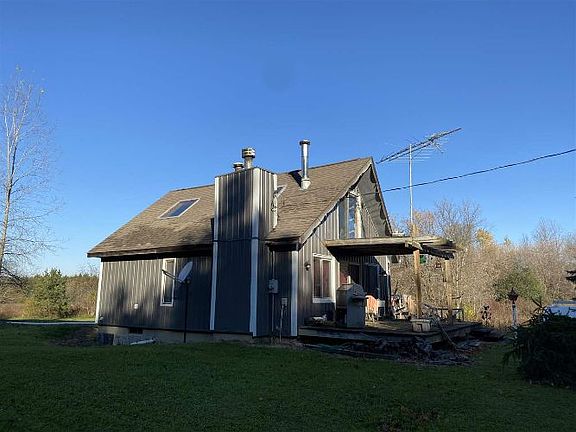 Charming home on secluded 10.55 acre parcel with fenced back area for horses. Home completely remodeled in 2019 with new kitchen, bathrooms and flooring. Home features natural firelit living room with sliding door to front deck, spacious upper level master bedroom with full bathroom, wood burning stove and sliding door to upper balcony, 30 x 40 pole barn with lean-to and horse shelter. Includes additional .46 acre parcel 16-31-576-013 on Irish Road.