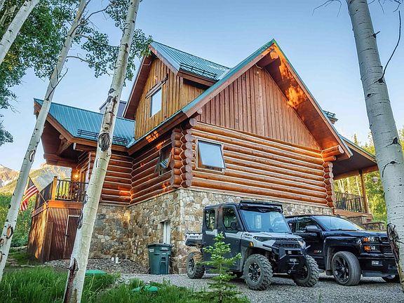 Mountain lifestyle and comfort is hard to beat at this mountain home for sale located just 17 miles southwest of Ridgway & 33 miles from Telluride. This 6.47 acre property has impressive real estate assets as well as private hunting and recreational access close by with access through an HOA easement. The elevation is 9,423 ft with stunning mountain views of S9, Hayden Peak, and North Pole. A great mix of Aspen, Ponderosa Pine, spruce, and Scrub Oak trees surround the property. The main home is a 2,565 square foot log home built in 2019. It has 3 bedrooms and 3 bathrooms which includes a 300 square-foot guest cabin, that could be used as a home office or studio as well as a 2-car expansive garage which includes a workshop. The main level has a master bedroom & bathroom, kitchen, dining area, and living room with a wood burning stove. The upstairs features the second & third bedroom, with a Jack and Jill bathroom. The basement features a second living area, an office, utility room, laundry area & a half bathroom. The home has solar energy backed up by a three year supply of propane and a backup generator. GMU 70 Mule Deer & Elk Hunting Hunting close to the property is astounding. Located in GMU 70, Situated in the southwestern territory of Colorado/ San Miguel counties, Unit 70 offers promise to hunters everywhere that success and experience can be found here. Whether you are hunting mule deer or elk, both have a thriving population in Unit 70. Mountain Hiking, Mountain Biking, Four Wheeling, and Hunting Access The recreation that is easily accessible from this property is tremendous. With San Juan Vista road a 2.5 mile scenic loop, four wheeling on and around the property. In the winter, the owners snow machine to their homes and around the loop or down to highway 58P to Last Dollar Rd. The terrain is skiable on the property and in the area. From door to Telluride Ski Resort in the winter is 50 minutes. The current owners have a Polaris Ranger with snow tracks which gets them to and from the winter parking area in comfort. Don't miss the opportunity to make this extraordinary log home in San Juan Vista your own. Schedule a private tour today! Winter access is 1.5 miles or 8 minutes from parking lot to home with snowmobile or UTV with tracks which owners are willing to sell.