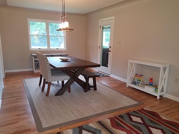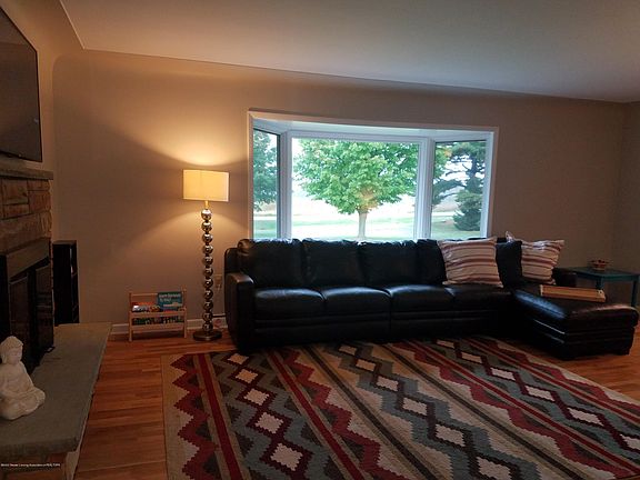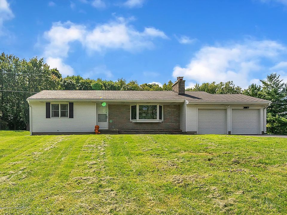 Beautiful updated home featuring a light and bright open floor plan situated on a private feeling 2 acres with tree line across the back of lot. Two bedrooms with a potential 3rd bedroom in the basement with the addition of a code egress window. Gorgeous spacious remodeled eat in kitchen with lovely updated cabinets, quartz countertops, custom built in table with butcher block top and seating and updated tile floor. Large light and bright livingroom with cozy fireplace and hardwood floors opens into the formal dining area with hardwood floors. Updated full bath with custom vanity and tile floor. Fabulous 3 season's room that opens onto the deck that overlooks the lovely yard. Lower level offers a huge familyroom with fireplace, rec room and a home office or potential 3rd bedroom with the addition of a code egress window. Two car attached garage and spacious shed. Driveway has an additional parking pad. Home is conveniently located to highway access, shopping and restaraunts.