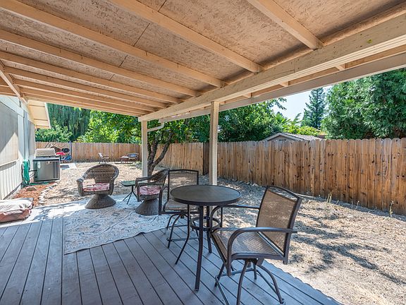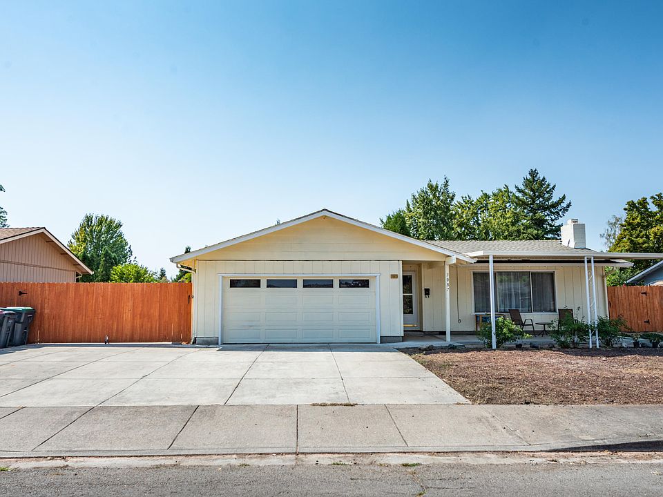 One level home in East Medford with updated kitchen white cabinets granite counter stainless steel appliances eating bar dining room fireplace in living room with wood stove insert large covered porch covered deck in the backyard three bedrooms two bathrooms .19 Acre lot. Seller offering a $10,000 credit for landscaping or closing costs to new buyer at close of escrow. Living room with wood floors family room with wood floors and wood ceilings Large RV cement pad on side of house for parking 60 feet long and place to park 3+ cars in driveway and a two car garage. Great location close to near by shopping, restaurant