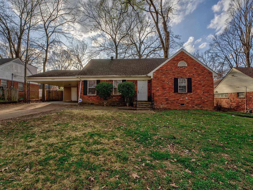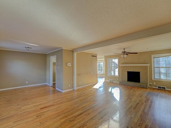Charming 4-bedroom, 2-bathroom brick home with 2 bedrooms downstairs. Hardwood floors throughout, a spacious great room with a fireplace seamlessly connects to the dining room. The eat-in kitchen boasts tile flooring and a sunny breakfast area. Convenient laundry room with cabinets. Enjoy the fenced backyard with a patio and a 2-car carport. With a touch of TLC, this home has the potential to become your dream home.