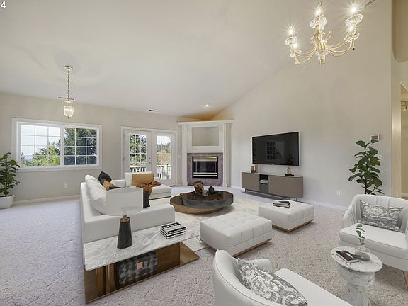 Nestled in Eugene's picturesque Southwest Hills, this charming home offers a seamless fusion of comfort and sophistication. Upon entry, be welcomed by vaulted ceilings and the radiant allure of crystal light fixtures adorning the hallway. The main living and dining room captivate with a grand crystal chandelier, a gas fireplace, and access to the upper deck. Venture further to discover an inviting kitchen adorned with sleek stainless steel appliances, Corian countertops, and a pantry, accompanied by a cozy dining nook for enjoying meals. This area of the home features newly refinished maple hardwood floors and provides access to the upper deck where you can revel in the stunning views. On the main floor, the primary bedroom awaits, presenting a tranquil suite with a walk-in closet, an ensuite bathroom with a luxurious soaking tub, separate walk-in shower, double sinks, and access to the upper deck. Lastly, you'll discover an additional versatile bedroom on the main level, offering access to the main level guest bath, a space that could function nicely as an office, and graced with French doors. Head downstairs to find the family room, featuring another gas fireplace, a convenient wet bar, and access to the lower deck. With two additional guest bedrooms downstairs and another full bathroom, this additional space presents incredible opportunities for hosting. There is ample storage including a large storage room downstairs and a gardening room with an outside entrance. Outside, the enchanting backyard invites you with two Trex decks, lush greenery, garden beds, and a fully fenced terraced yard. Further amenities include a three-car oversized garage, as well as plug-ins for a hot tub on the upper deck. Conveniently situated near parks and nestled in the coveted Churchill area, this home offers an idyllic lifestyle with easy access to nature trails, schools, and amenities. Schedule a showing to capture this meticulously crafted home for yourself!