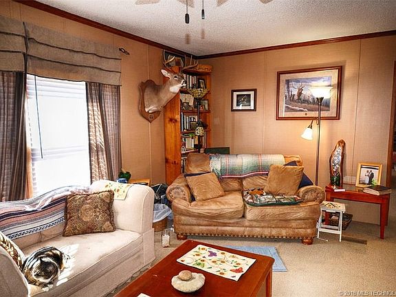 JUST MINS TO THE WATER ! Like new double wide with 3 beds 2 baths and open floor plan. Big front and back decks for enjoying the wildlife. Barn and 5 acre m/l. No restrictions or covenants. Boat ramp 2 miles. Blacktop frontage.Maybe 20 mins to Tahlequah