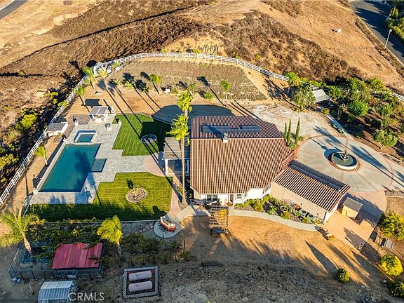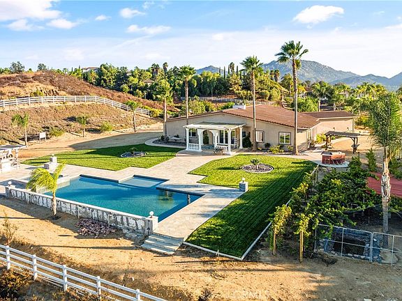 Exquisite Wine Country Estate – Welcome to an unparalleled luxury estate. Current Owners have spared no expense in upgrading & remodelling the entire estate. This magnificent 4-bedroom, 3.5-bath home offers an expansive 2.51 acre oasis that blends sophisticated living with serene countryside charm, catering to those with discerning taste. This estate offers the perfect combination of privacy & proximity to urban conveniences. Features: Outdoor Living: The stunning pool & spa with waterfalls & colored lights is surrounded by spacious patios invites endless days of relaxation entertainment. The outdoor space offers breathtaking views of 4th of July fireworks, ensuring every summer holiday is spectacular. A fruit orchard provides fresh seasonal produce.The private, gated tree-lined driveway is elegantly illuminated at night. The property features a circular driveway for convenient access, & a spacious 3-car garage, providing ample parking for your vehicles & guests. An elevated outdoor kitchen & entertainment area provides the perfect setting for hosting gatherings while enjoying views of the rolling hills & the lush landscape. Architectural Grandeur: Upon entering, you are greeted by a front door that makes an impressive statement with decorative wrought iron work, setting the tone for the elegance found throughout the home. The grand foyer boasts custom marble flooring, intricate molding, & soaring ceilings that evoke timeless elegance. The luxurious formal living spaces are enhanced by a designer chandelier & ornate fireplaces, offering an inviting environment for upscale gatherings. European-Inspired Modern Kitchen: Prepare to be wowed by the European-inspired modern kitchen, featuring cabinetry imported European cabinetry, providing both luxury & durability. This state-of-the-art kitchen is equipped with high-end appliances, ensuring an effortless cooking & dining experience. A sleek espresso bar has been integrated into the kitchen’s design, offering a touch of café-style sophistication. The estate includes a spa-inspired primary suite with a lavish bathroom featuring dual vanities, custom stonework, and a glass-enclosed shower – a perfect private retreat. The sauna adds an extra layer of relaxation to your daily routine. Prime Location: Situated in the prestigious area of Temecula, this estate offers proximity to world-class wineries, renowned golf courses, & charming downtown Temecula. It’s a lifestyle of exclusivity, luxury, & tranquility.