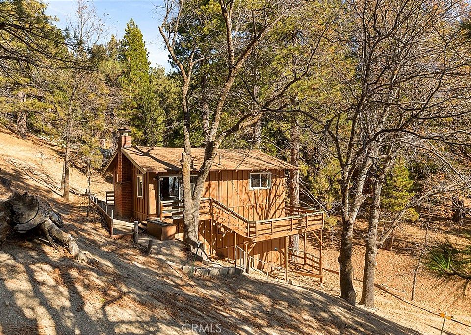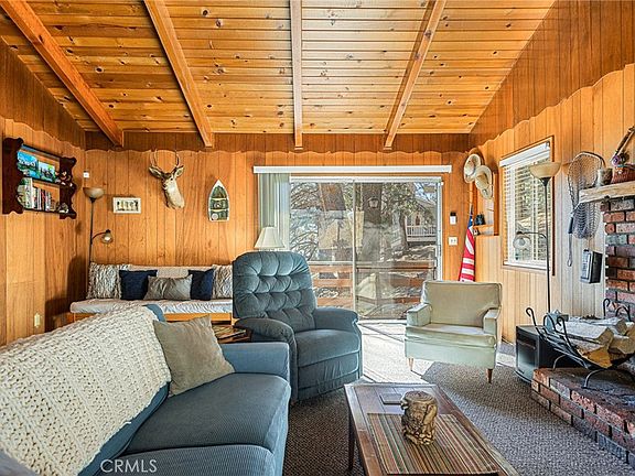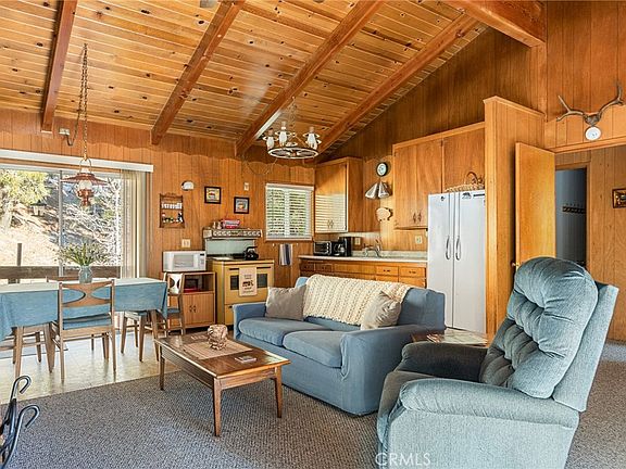 Vintage cabin featuring all-on-one-level living and many of the original fixtures preserved. The home offers an open floor plan for the living room, kitchen and dining area with a wood burning fireplace as focal point. A slider on either side of the living room opens onto a wrap around deck which presents the perfect spot to enjoy the beautiful surroundings. Just off the living room are two good sized bedrooms and a bathroom. There is a spacious buildup storage area underneath the home that offers excellent expansion potential. This is a quintessential 1960s getaway cabin, located less than ten miles from Snow Valley Ski Resort.