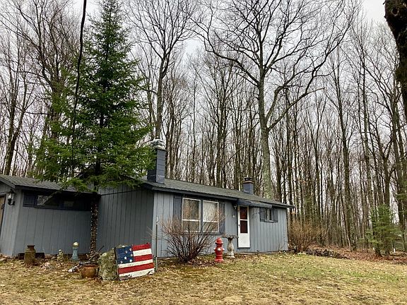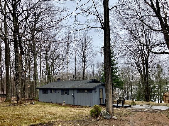 Located across the road from beautiful full recreational Bishop Lake, this nice 2 BR 1 BA country cabin on 1.7 acres includes a 2 car garage and a 30 ft deeded access to Bishop Lake, a 288 acre Forest County lake with bass, northern pike and blue gills. This gorgeous, wooded property features an outdoor concrete patio, firepit, drilled well, conventional septic, electric heat, a beautiful wood-burning fireplace, and a full unfinished basement. Come take a look!