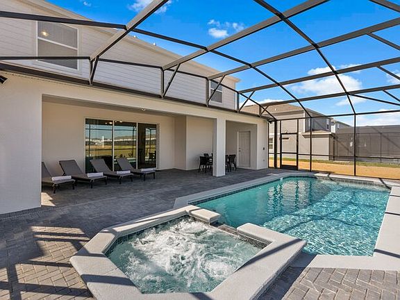 Escape to a fully screened backyard oasis boasting a private pool and built-in spa