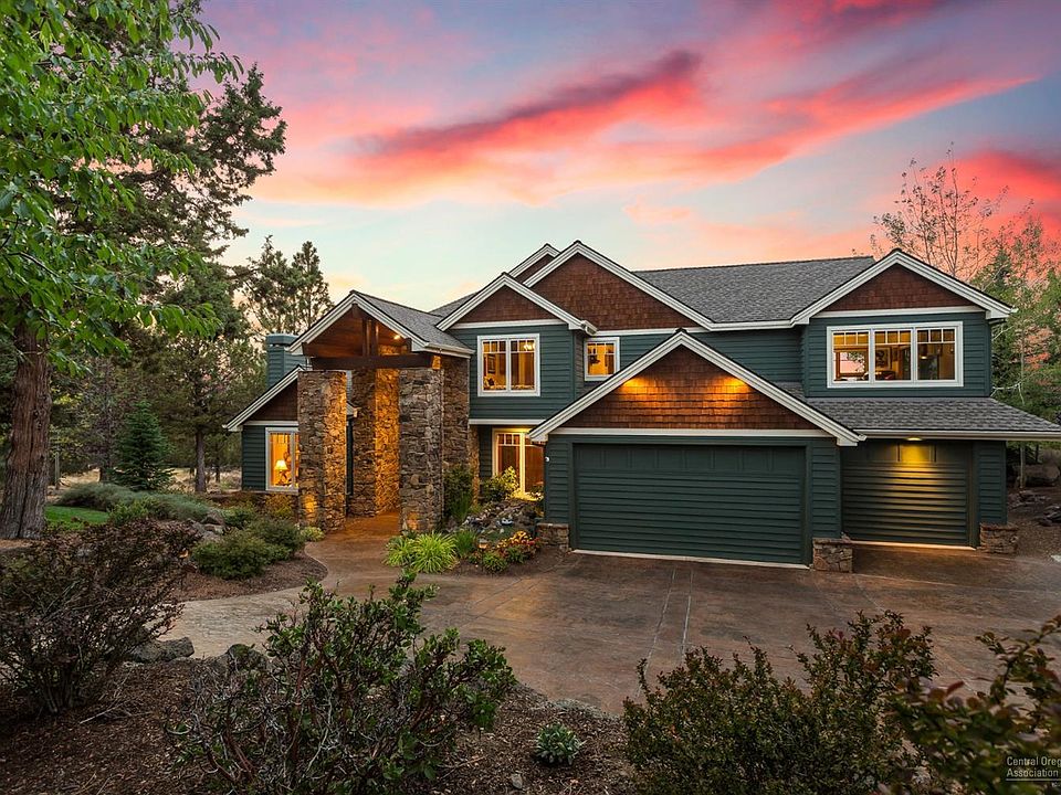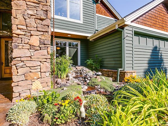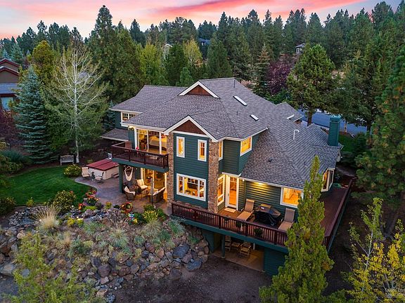 Expansive Cascade Mountain views abound from this exquisite one owner custom Awbrey Butte home! No detail is missed, from the Montana mossy stone veneer, cedar siding and multiple water features, to the lighted tray ceilings, inlaid red birch flooring, cherry cabinets and granite slab counters. The main level includes formal and informal dining, as well as a great room and separate living room; both with fireplaces! An abundance of light filled windows bring the inside out to the wrap around deck and patio space. The master suite awaits upstairs with amazing mountain views from its private deck. Dual granite vanities, a luxurious soaking tub and tiled shower pamper the master bathroom. Two more bedrooms and a full bathroom are found upstairs, along with a flexible entertainment room highlighted by a wet bar! Use your imagination downstairs as the walk out basement includes a full bathroom, bonus room, Murphy bed, secondary pantry w/ sink & appliances, and its own entry & patio space!
