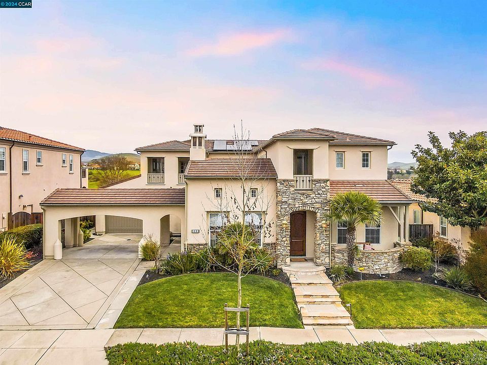 Welcome to the highly sought-after community of The Bridges, where this stunning & rarely available "Lion's Gate" model awaits. Phenomenal location with panoramic vistas of the golf course & Mt. Diablo Unparalleled opportunity for family living. Enjoying a harmonious blend of contemporary design and timeless elegance, this home is a sanctuary for families seeking both comfort and togetherness! Upgraded kitchen with newer built-in SS Viking appliances. Butler's Pantry with 3 wine refrigerators and a spacious moon-shaped center island creating an ideal space for entertaining! The kitchen opens to a light-flooded family room that seamlessly integrates with an exquisite interior private courtyard! Elegant formal dining room & living room, perfect for familygatherings.A home office/4th Bed, a downstairs bedroom suite provides flexibility for an au pair or guests! .A luxurious retreat, complete with a sitting area, stall shower, large jacuzzi tub, dual vanities, Quartz countertops, and a generous-sized primary "salon" with a wet bar and fireplace. Jack & Jill bedrooms, multiple balconies. Newer wood flooring, Solar Panels & Tesla Power Wall! Beautifully landscaped backyard features elegant coated pavers & stunning views! Close to highly acclaimed schools! Idyllic family living!