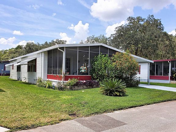 STOP THE CAR! This one is priced to sell fast! This home is move in ready and neat as a pin. The first thing you will notice is no trees overhead, which means low maintenance exterior! Freshly painted outside and inside with a wonderful screen porch on the front. Adorable kitchen with newer fridge and range offers plenty of cabinet storage, which extends into the dining room with more wonderful storage built in. Gorgeous master suite with ensuite bath and lots of closet space. The guest bedroom even has lots of extra closet space! Roof and HVAC were considered newer when buyer purchased home in 2011. Exact age not known. Everything in this home is in excellent condition and move in ready. If you are looking for a great home at a great price make sure to see this one. Located in the age qualified community of Clover Leaf Farms. Located north of the Tampa/Clearwater/St. Petersburg metro area, Clover Leaf Farms is a 55+ retirement mobile home community that is big on amenities. Offering two spacious clubhouses, billiards, shuffleboard courts, pickle ball and catch/release fishing you won't be bored here. There is also a dry sauna, indoor heated swimming pool, and a whirlpool-spa-hot tub as well as a large heated outdoor pool and new fitness center being built. This Brooksville, FL mobile home neighborhood will never leave you wanting. Clover Leaf Farms also provides its residents with a pet friendly environment that includes RV storage, a scenic picnic area, and on-site management. With so much to offer, you can't go wrong when you choose to live at Clover Leaf Farms.