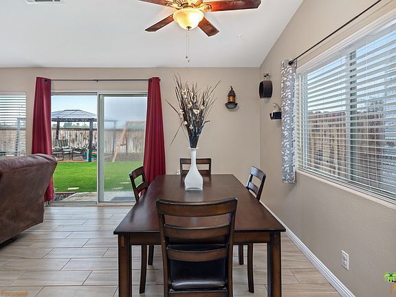 Beautiful Thousand Palms home! This 3 bedroom 2 bathroom home has tile and wood flooring throughout. The property has R.V. parking that is gated from the front yard and fenced from the backyard, perfect for storing all your outdoor and desert toys. The solar panels are on a lease program and keep your power bill at a consistent $145 per month! Solar is extremely useful during the hot summer months. Located close to the community park, library, Della Lindley Elementary School, and easy access to to the 10 freeway.