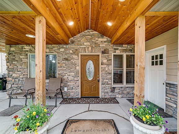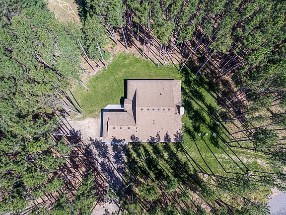 Custom-designed slab on grade home, heavily surrounded with Red Pine trees, wild raspberries, and wildlife on 2.84 acres. A-Frame living room with stone fireplace. In-floor heat throughout. Master suite with walk-in shower stall and jetted tub and vaulted ceilings throughout. Insulated garage with in-floor heat. Pole barn 36x 48 insulated, heated, concrete floor with 12ft door. Wrap around concrete walkway and patio with cedar ceilings. This home is a must-see.