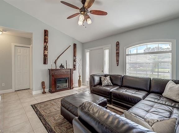 Stunning sunsets overlooking Lake Sapphire from your very own fenced backyard! Tile throughout, vaulted ceilings, granite countertops, and updated bathrooms are just a few of the many features. This light and bright 3 bedroom, 2 bath, 2 car garage home has been beautifully maintained. Offering over 1500 square feet and a living room, family room, formal dining, breakfast nook, and LARGE fenced backyard this home is perfect for growing families! The spacious master ensuite features tray ceilings, crown molding, private access to the extended screened lanai, dual vanities, walk-in shower, and a private water closet. U-shaped kitchen overlooks great room and features stainless steel appliances, granite countertops, and a tile backsplash. Come take a private tour!