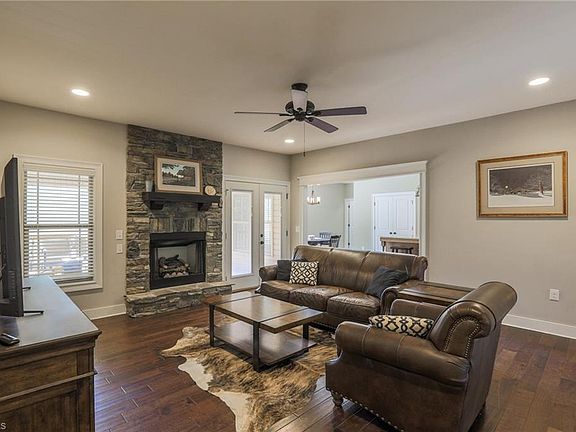 Custom built one level living, with walk up unfinished space over the garage for future Bonus Room Expansion. Natural gas supplies the stove, gas log fireplace, heating system and the tank-less on demand water heater. Large kitchen island featuring hammered copper sink, convection oven stove, and abundant cabinet storage. Master bed w/large walk in closet/dressing room, jetted tub and roman shower with rain shower-head. Screen porch, detached storage building and three car garage.