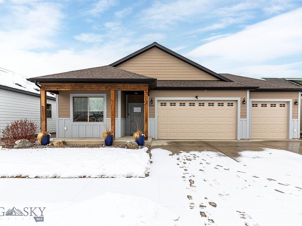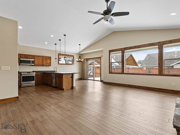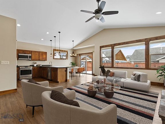 Beautiful single level home with a THREE car heated garage. Gallatin Valley Homes construction with Seller upgrades. Open floorplan, vaulted ceiling and natural light. Lamanite flooring throughout the house with the exception of the primary bedroom. Upgraded appliances and lighting. Custom blinds, air conditioning plus an extended back patio for enjoyment and entertaining. The primary bedroom has a large tiled shower, double vanities and a walk-in closet. The laundry room is complete with extra cabinet storage and a deep sink. Metal planters with gorgeous perennials and landscaping in the backyard. Small storage shed for yard equipment. Property is convenient to schools, restaurants, shopping, the airport, local recreation and nearby parks. You don't want to miss this one.