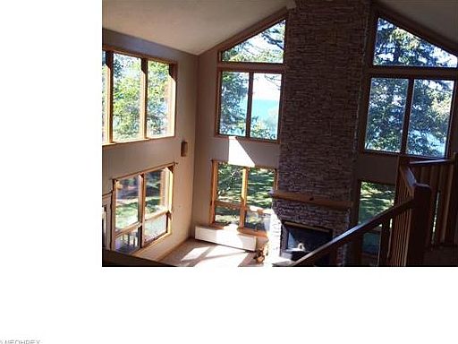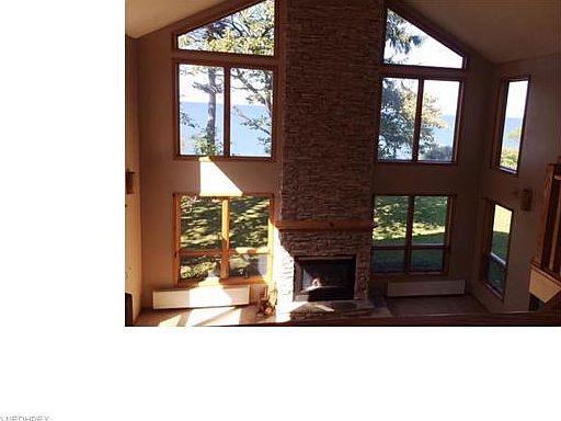 Stunning Lake Erie waterfront contemporary completely rebuilt in 1996 and designed with open floor plan to capture the breathtaking views of the lake from almost every room. The spacious two story great room with full wall of stone fireplace and wall of windows is very dramatic and opens into an office area. The recently updated kitchen (10 foot island, added new cabinets)/dining and family room area has a 2-way gas fireplace and can accommodate a large party for dinners and holidays. The kitchen also adjoins a solarium/greenhouse overlooking the front of the home. The family room could easily be used as a third bedroom. A heated sunroom with sauna leads out to large deck and hot tub. A spacious bedroom and full bath is completes the first floor. The master bedroom is located on the second floor and overlooks the great room which shares views of the lake. An office area upstairs consists of all windows facing the lake and steps to a third level with a lookout tower or loft area. The 3 car garage is heated and has extra shelving for additional storage. New roof installed in 2013 and new boiler in Nov 2015. Erosion control installed in 96 by erected 6 foot cauldrons across entire property's shoreline. Bose sound system is throughout the interior and outside to provide music for those summer parties. Any lake lover will love this one of a kind home!